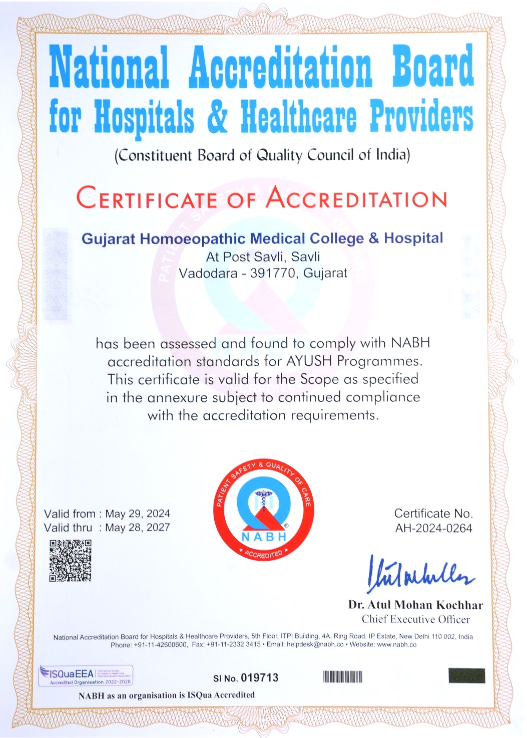 Recognized by National Commission for Homoeopathy , New Delhi.